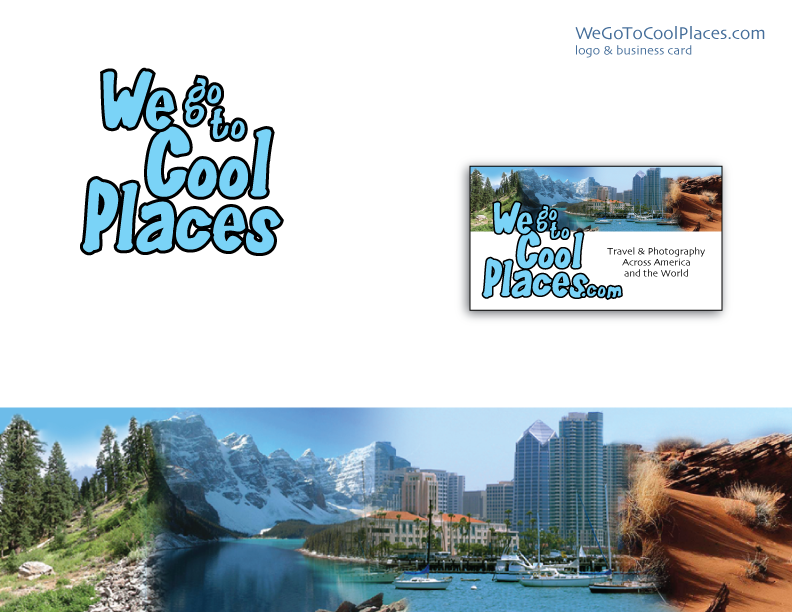 Logo, website header, and business cards created for (now-defunct) travel blog.
